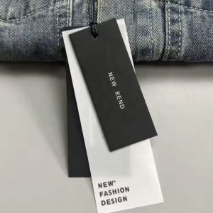 Manufactured using environmentally friendly specialty paper sourced from sustainable channels and enhanced with advanced UV printing technology, this tag serves as a premium branding and information carrier for clothing, denim, bags, and footwear products.